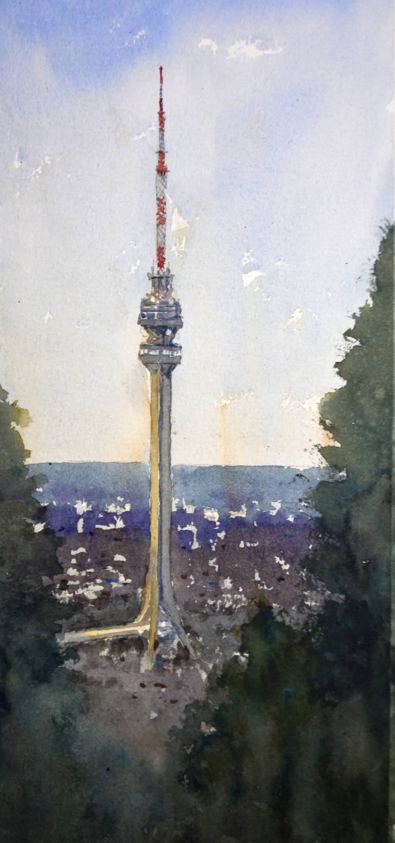 Autor / Author: Nenad Kojić Naziv / Name: Toranj na Avali Tehnika / Technique: Unique Aquarelle / Watercolor on paper Format (approx): 17x36 cm Godina / Year: 2018