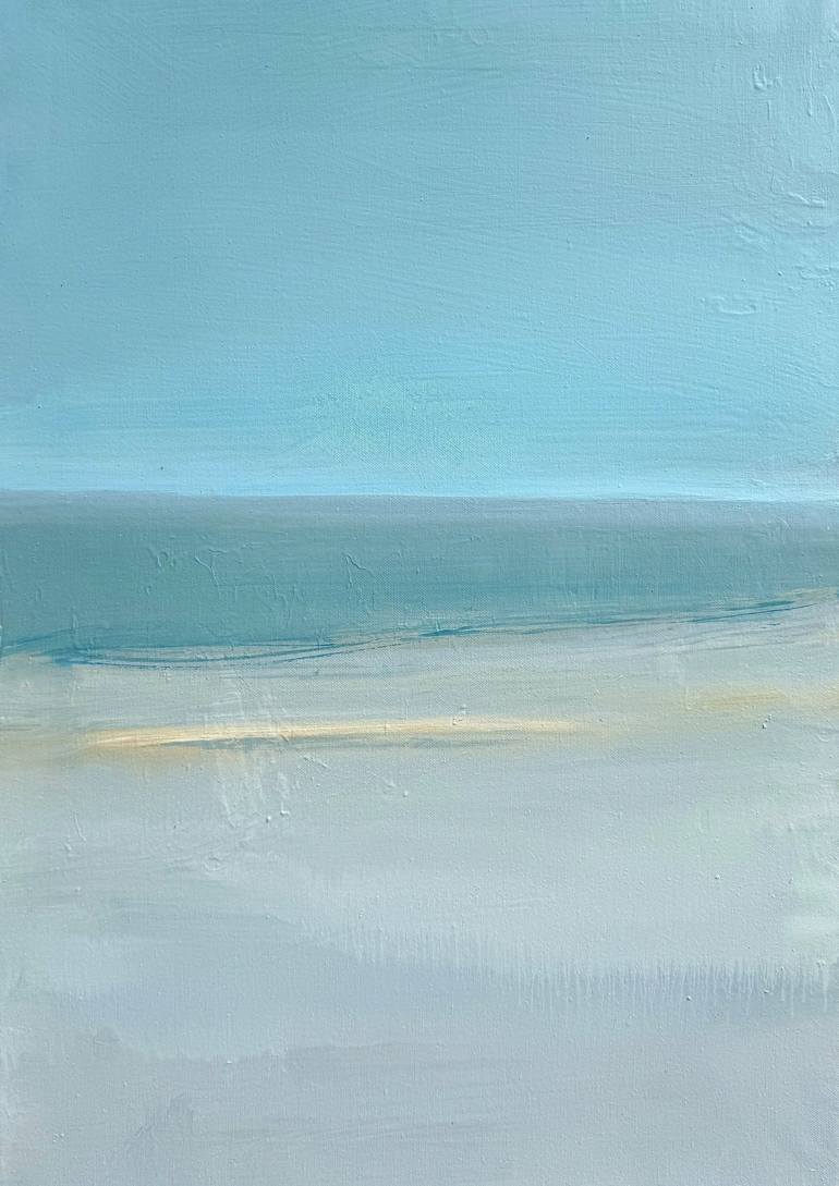 Embrace the gentle beauty of a new day with "Awakening," a captivating painting by Zakhar Shevchuk. This semi-abstract landscape evokes the peaceful transition from night to morning with its soothing color palette and minimalistic design. The painting's upper half is dominated by a serene blue sky,...