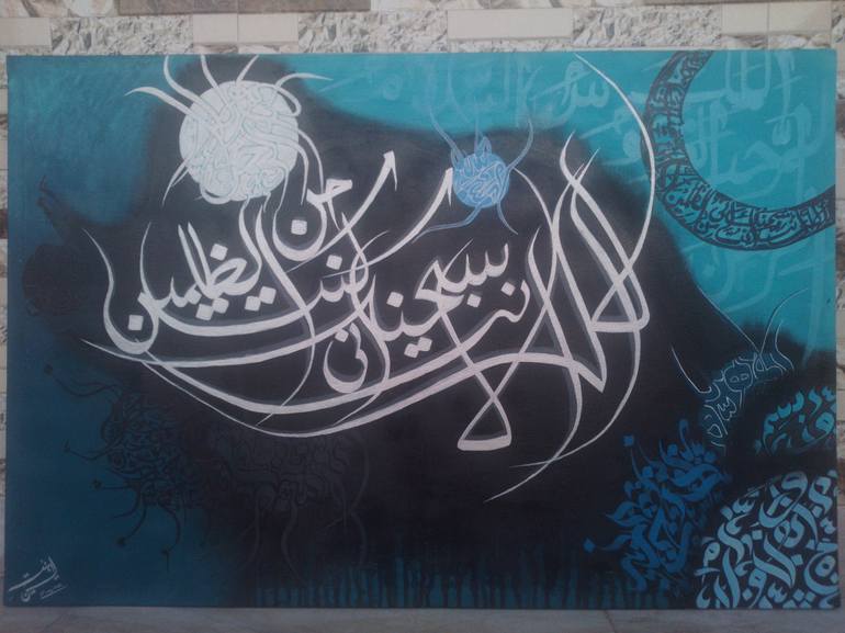 "لاَّ إِلَـهَ إِلاَّ أَنتَ سُبْحَـنَكَ إِنِّى كُنتُ مِنَ الظَّـلِمِينَ" Translation: “…There are none worthy of worship besides You. Glorified are You. Surely I am from the wrongdoers.” (21:87) The original painting has been carefully coated with Winsor and Newton gloss varnish, serving as a prot...
