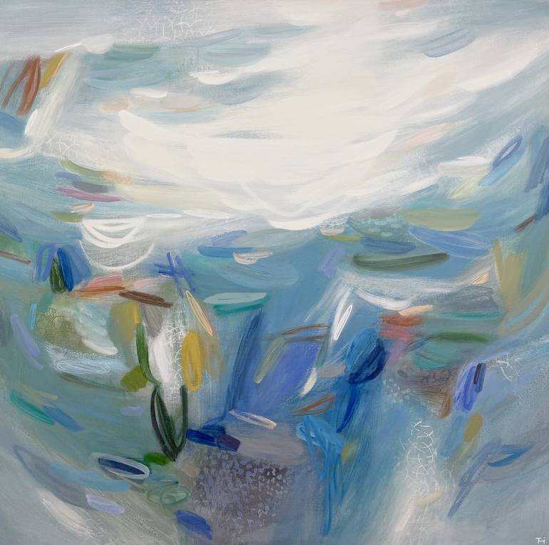This abstract painting is inspired by nature, especially clouds and water. Terri Dilling's art makes reference to the landscape around her but also an emotional landscape within. The duality of interior/exterior realms gives the work a depth of meaning. She uses gestural marks and color relationship...