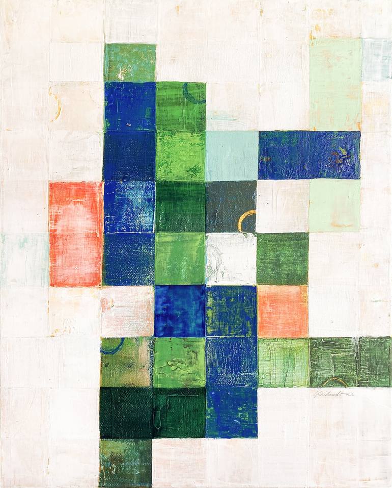 Louis is a Philadelphia, PA based artist and musician. "There is the idea of what a painting could be, then there is what happens while making the painting." "In my current work I employ a process driven call & response approach with the aesthetic goal of balancing shifting degrees of chaos and potential through the orchestration of organic and geometric structures. I am inspired by diverse sources: patterns (natural & man-made), sound waves, cycles, waves, frequencies, urban decay, architectural artifacts, geometry, geology, astronomy, tribal & corporate symbols, icons, technology and commercial graphics. By making art, I endeavor to reveal the mystery that is common to them. I am drawn to the history of things; to the possibility of different outcomes based on combinations of planned decisions and random events. I am intrigued with how small, repetitive actions consistently applied over the course of time, create complex systems that are greater than the sum of their parts. My approach is exploratory, reactionary and cathartic. I start with a concept, and follow the cues that the painting process gives me, often using unpredictable means to apply and remove paint, recycling, re-purposing and repositioning. Some decisions are planned, some are not. The result is the consequence of my reactions to previous actions. This process leads to reinvention and discovery, erosion and re assemblage; a play of deliberation and chance." His paintings and commissions are included in many private collections.