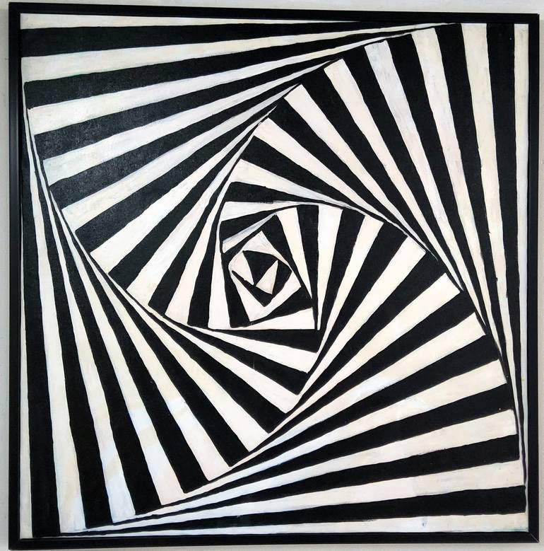 BLACK AND WHITE this original acrylic painting on canvas I make by acrylic paint by brush ready to hanging, varnishing, and framed by black color