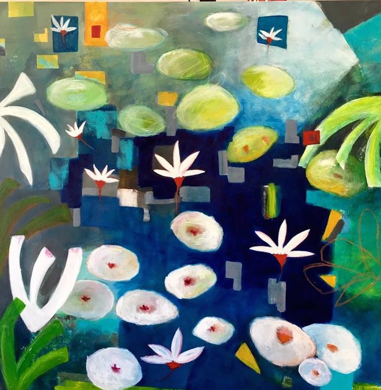 Contemporary image. Water Lily pond. Calm feeling of water running through the Angel National Forest. Life changing cycle.