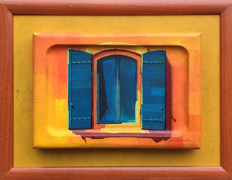 BLUE WINDOW, PROVENCE, 2010, oil on wood, wooden frame