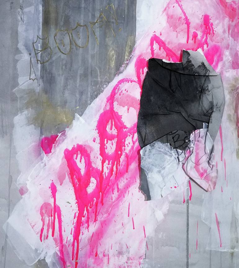 Abstract painting made with acrylics and aerosol; Mimicking the textures of the streets
