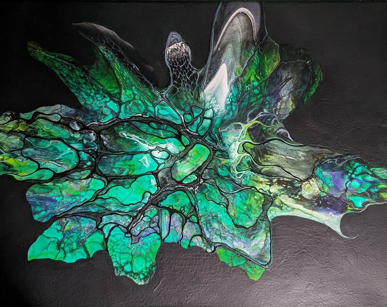 Very pretty canvas composed of shades of green, touches of purple and white on a black background. It will be even more beautiful matched with Levitation or l'Orée du Bois canvases. Glossy varnish finish. Sold without frame with its hanging system. Don't hesitate to check out my Instagram page wh...