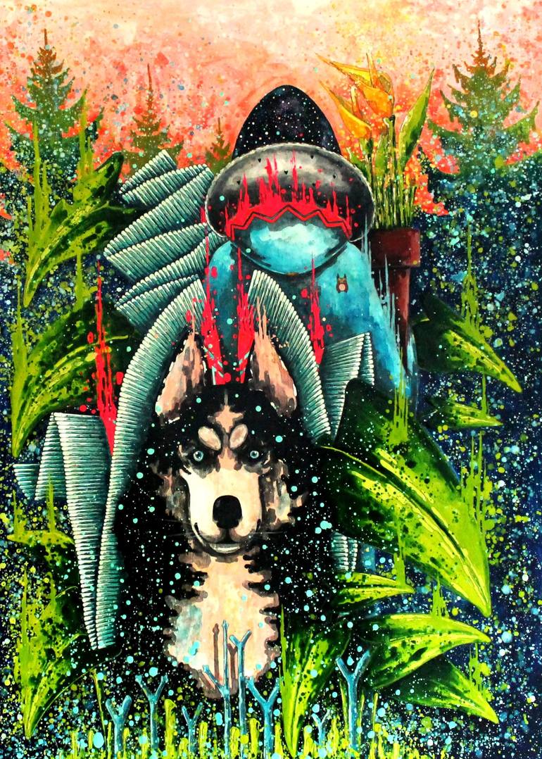 mixed media manual graphics varnished baby bloom carries the flower of life in her hands and be protected by the royal husky where she appears with this flower, nature blooms again hello friends! when buying this work, you will receive as a gift 3 prints from my different collections of works and a...