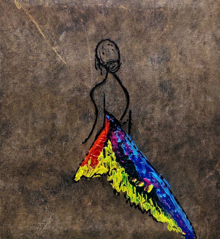 Back Pose Women in a multicolored Gown Creative Acrylic Texture Art. This artwork can be customized in required sizes. Contact for any type of customization -