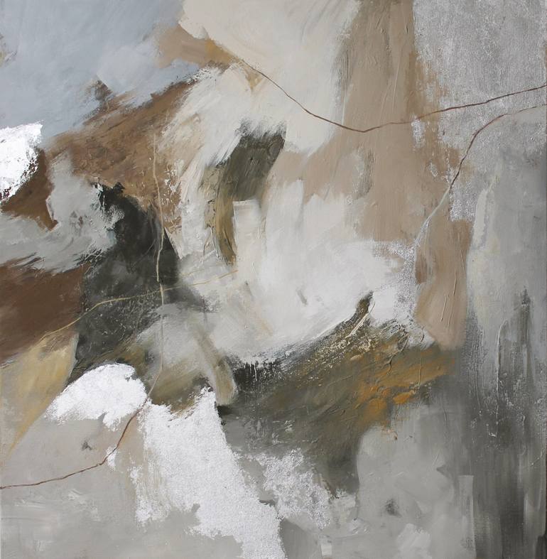 In this piece, I poured my emotions into swirling earthy tones and shimmering silver leaf, capturing the quiet tension between chaos and calm. The abstract forms invite you to find your own meaning as the silver glimmers subtly, reflecting light and hope. It brings a profound yet soothing energy to ...