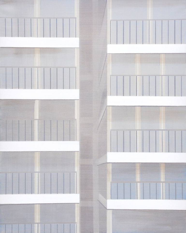Cécile van Hanja, born in Corsica in 1964 and a graduate of the Gerrit Rietveld Academie in Amsterdam in 1993, is an artist based in Haarlem, Netherlands. Her artistic journey has been deeply influenced by her formative years spent in the South of France, later finding inspiration in the structured landscapes of the Netherlands. Van Hanja’s works epitomize the principles of ‘De Stijl’ and Modernism, notably influenced by Piet Mondrian’s straight lines and the movement’s pursuit of harmony and unity. Her fascination with the ideals of hope and prosperity stemming from these 20th-century movements is evident in her paintings, which often depict modern architectural compositions characterized by rhythmic patterns of verticals and horizontals. Emphasizing intangible aspects by creating open spaces, her paintings feature transparent walls and floors, leading to an interplay of reflections and vanishing points. The deliberate use of thin layers of acrylic and oil paint adds depth and luminosity to her works, allowing underlying colors to shine through and preventing the architectural compositions from becoming static. Cécile van Hanja’s art is renowned for its multi-colored labyrinth of spaces, creating an illusion of depth and complexity within a structured framework of lines and reflections. Her compositions invite viewers to explore the blend between rational and intuitive thinking, offering a unique perspective on modern architectural landscapes through her layered and transparent artistic approach. Her works are displayed in various private collections globally and represented by prominent galleries such as the Fremin Gallery in New York and Saatchi Art’s Samsung Architecture collection. Additionally, Cécile also accepts commissions. If you reside in a modern home and wish to commission a painting, you can submit a request through the Saatchi team, who will facilitate communication with the artist.