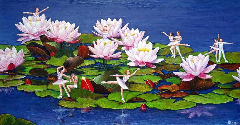 This original oil painting is one of the latest artworks of the talented contemporary Bulgarian professional artist Grigor Velev, deeply inspired by surrealism and naturalism. It represents one surrealistic ballet in nature scenery, as its trait is to present the world solely from a subjective persp...