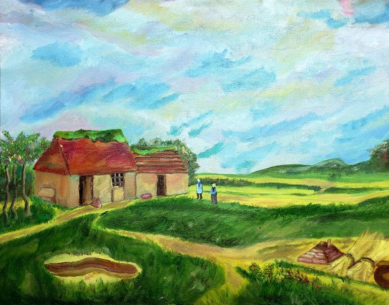 This is part of a series of paintings based on the drawings of Vincent van Gogh, hence the (after van Gogh). The images here include the work in progress and the final piece. The original drawing is noted with the title "Barn with Moss Grown Roof." It features a rural and somewhat simple landscape ...