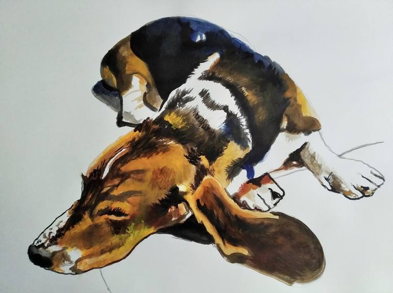 "Basset Hound" Acrylic on paper 60X84 cm By Soso Kumsiashvili 2022