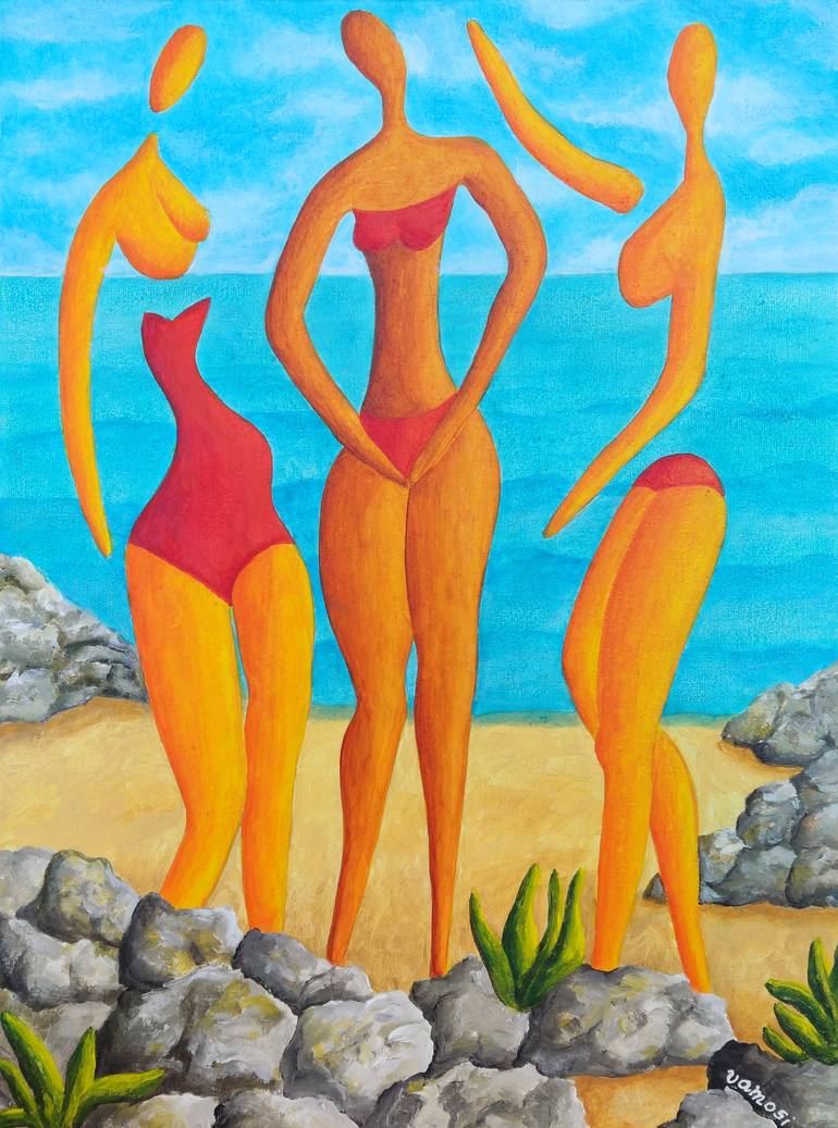 The painting depicts two female friends bathing in a lake, who are content (despite the fact that they do not have slim figures) and express the joy of summer comfort, harmony and peace. The atmosphere of the painting evokes soothing and positive feelings in the viewer. At the same time, the pose of...