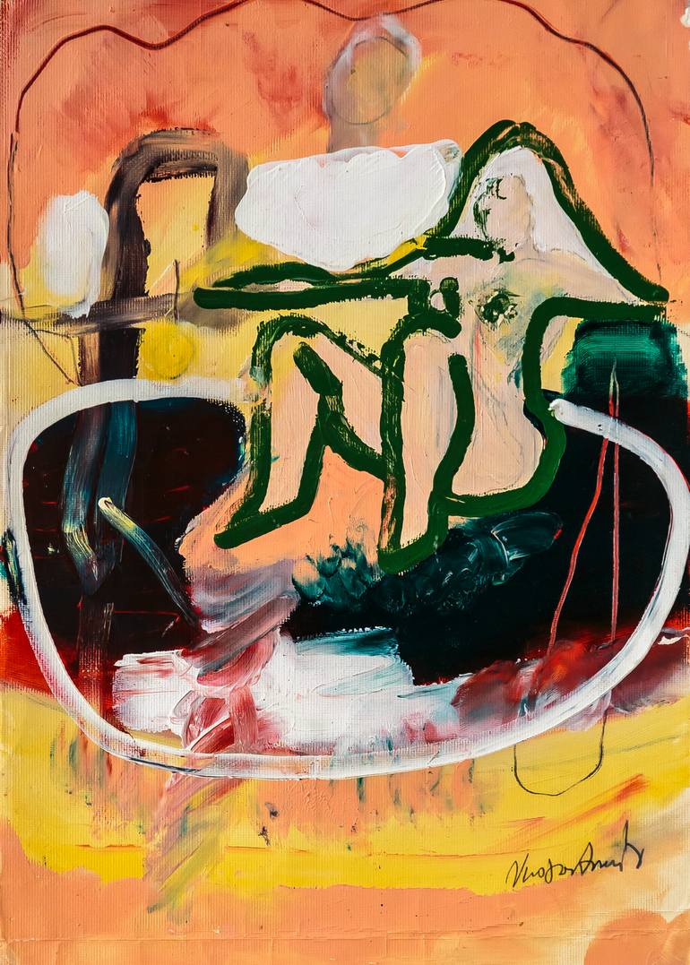 Under the influence of the 19th century bath scenes (orientalism) in a modern take with lots of acrylic on paper...
