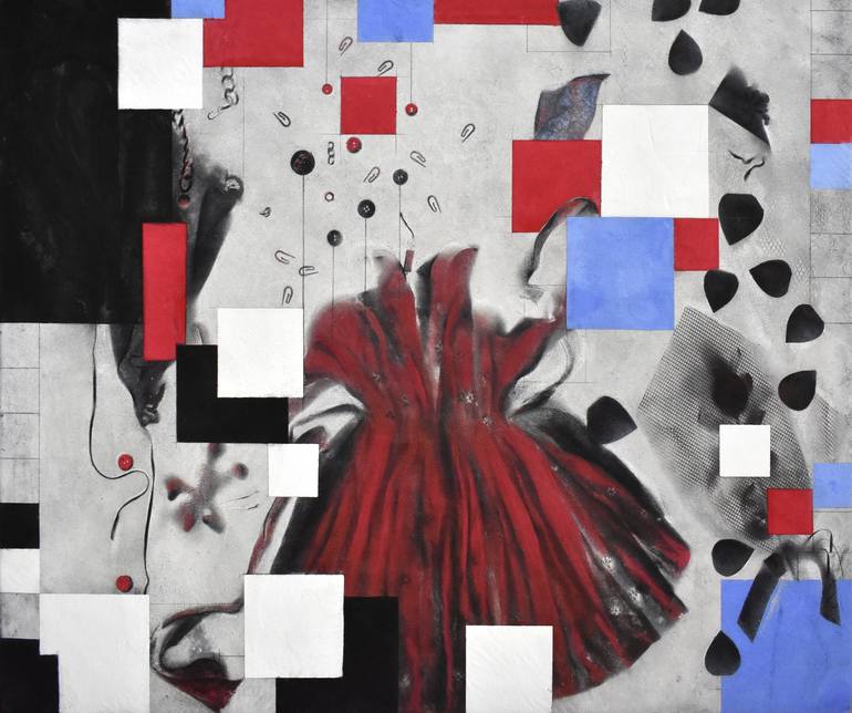"Be Happy" is a celebration of joy, an invitation to 'be happy' in a world of fantasy and fairy tales. Like a dream, everything floats and dances around a little girl. Toys, buttons, and petals swirl about her, creating a festive atmosphere. The geometric shapes add structure and emphasize the diffe...