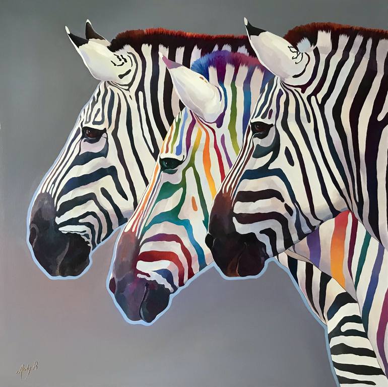 Original oil artwork painting, beautiful zebras for interior. Big size 100x100 cm. Oil on canvas, signed on the front.