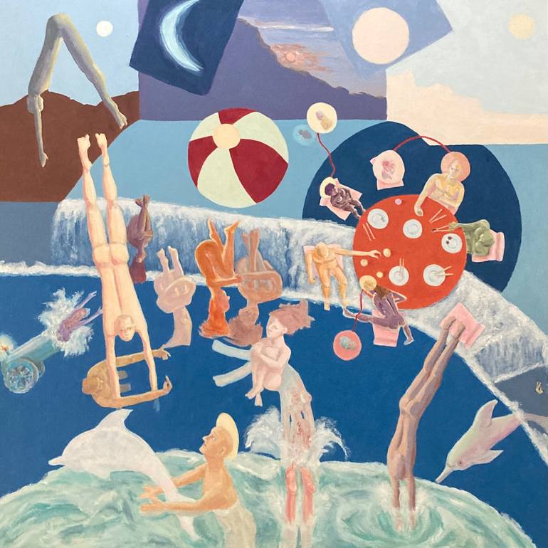 I am a painter and filmmaker based in Seattle. My intuitively created paintings juxtapose serious and absurd narratives with overlays of characters, locations and vibrant color. Place, time and repetition are manipulated to present a filmic journey in a single frame. My art journey has taken me from painting to performance to screenwriting and filmmaking and back again. The different disciplines have informed one another, presenting opportunities to grow and change my approach. The pandemic came along as I was already shifting to working in the painting studio as my primary practice. The strange world we are all navigating - claustrophic, exposed, vulnerable - the emotions and situations forced me to re-examine who we are to one another, and how we can live together in a healthy, compassionate, inclusive way. The Cabin Fever Dreams and Beach series images most directly deal with these ideas. Tom has a full-time painting practice and is actively seeking exhibition opportunities, art sales and commissioned work.