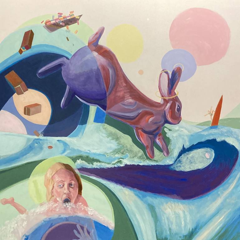 Part of the escapist Beach series, this continues with the recent addition of Angel Bunny, who navigates the surf with the best of them. New colors and textures have been introduced in this piece, which also investigates different ways of integrating earth, sea and sky. I hope the viewer will contin...