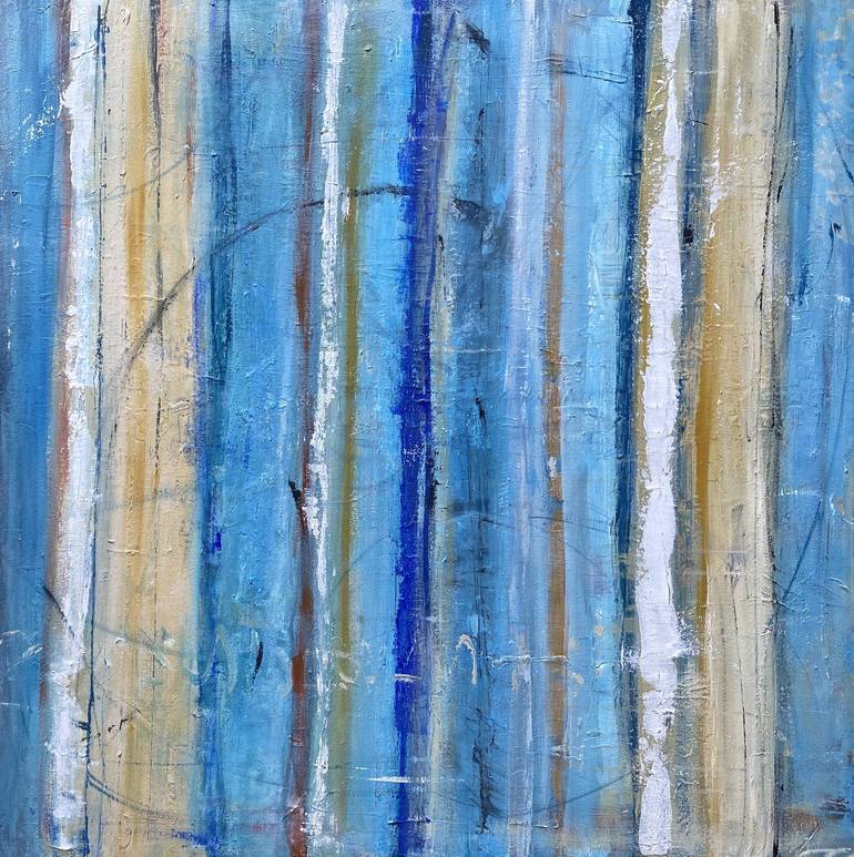 This is an original work, part of the beach vibe stripe series. It again highlights colors and textures that elicit a sense of beach calmness, waves rolling in against the warm sand and the coolness of the water and sea breeze. It adds color yet tranquility to a room and is designed for a beach ho...