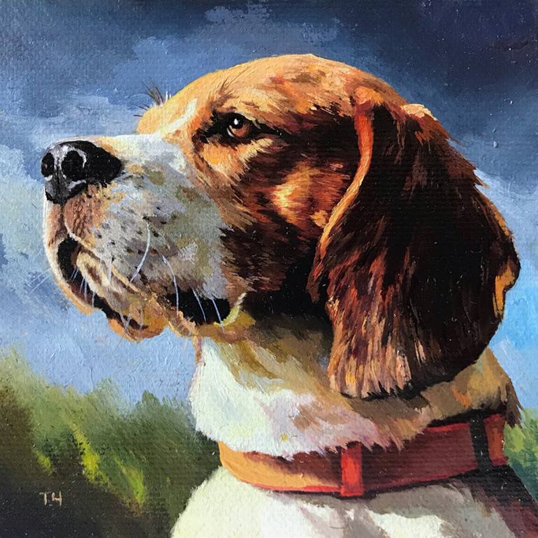 Miniature from the series of works "Portraits of dogs in miniature". Made on canvas with oil paints of the professional series "Master class" from the factory "Nevskaya palitra". Framed in Italian plastic. Behind a special device (hanger) for hanging on the wall. Single and original author's paintin...