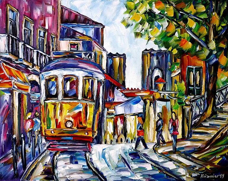 Colorful Lisbon. Palette knife oil painting, December 2019.