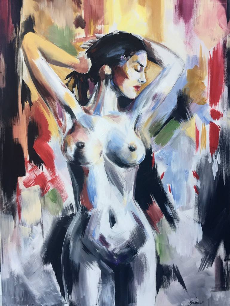 Charming female figure, original arcrylic on canvas artwork made myself, available in high resolution large prints up to 100+ cm. Looking wonderful in stylish modern interiors!