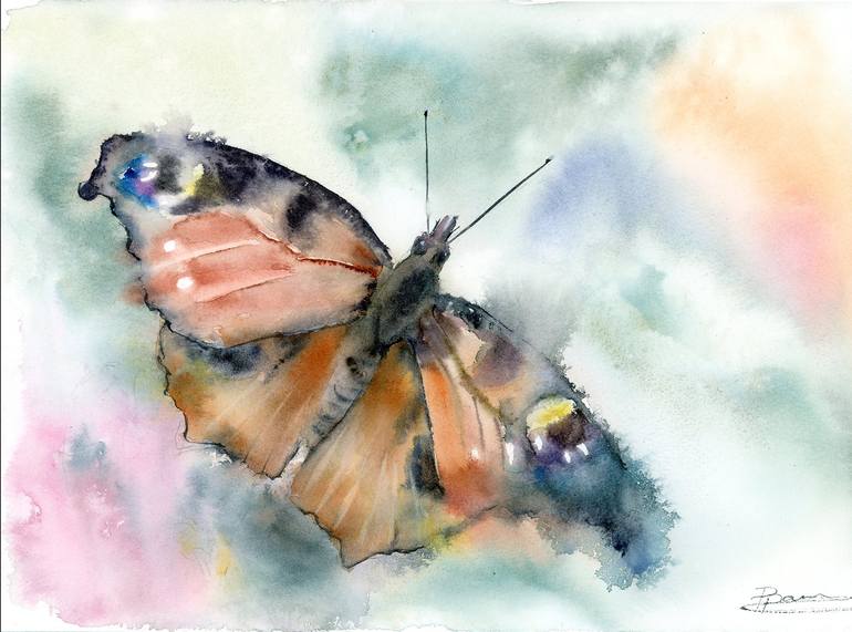 I painted this beautiful butterfly in nature. I painted the background as abstract to emphasize the importance of this insect. This butterfly is so beautiful like a flower!
