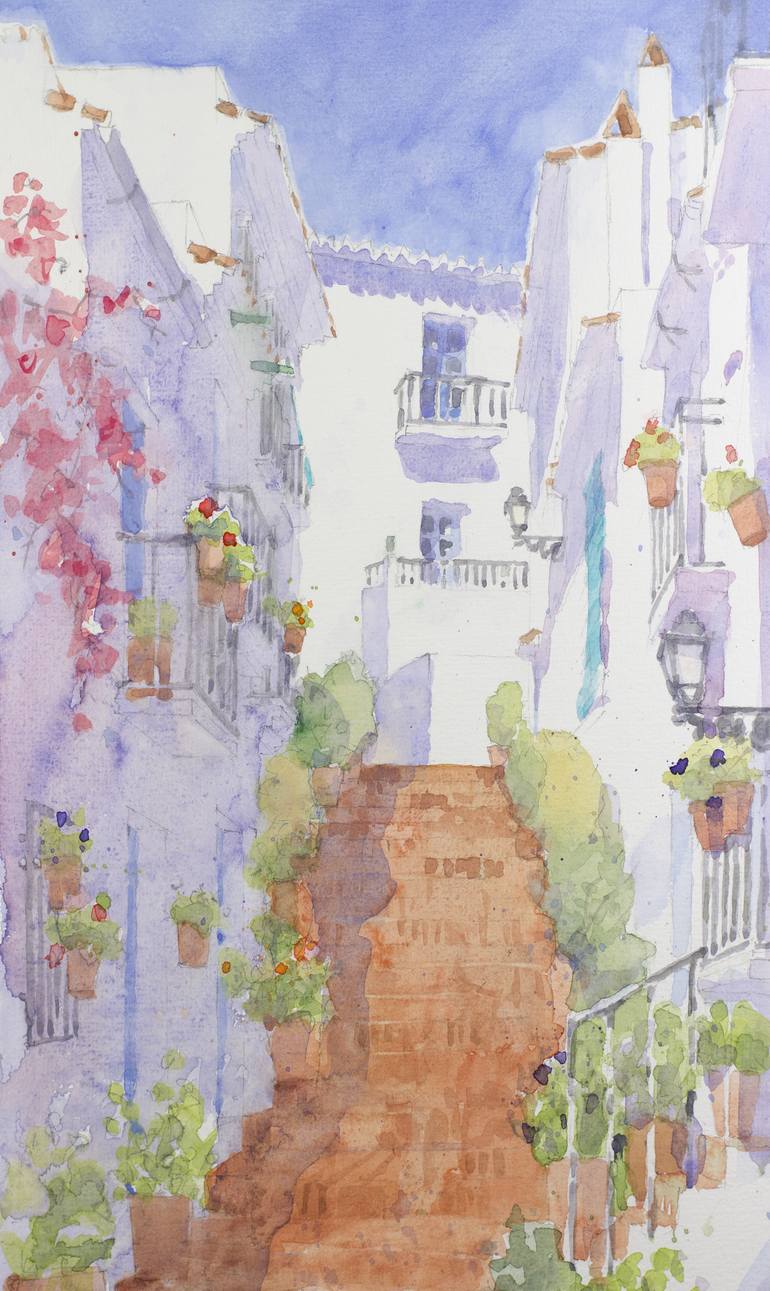 I am born in Augsburg, Germany. After finishing school I entered the German Air Force and passed Navigators Flying School at Mather Air Force Base, Sacramento, California. I flew on Tornados at Lechfeld Air Base, Germany near my home town until end of 1993. I had started to paint in 1986 and after a few years I decided to become an artist, so I canceled my contract. Later on I moved to Spain where I reside now in the beautiful village Frigiliana. You can visit me there at my watercolour studio in the old part of the village. So far I am looking back on more than 20 years being an profesional artist, experienced tutor and author of three books about watercolour. At the moment I am working on the next book about how I paint my watercolours.