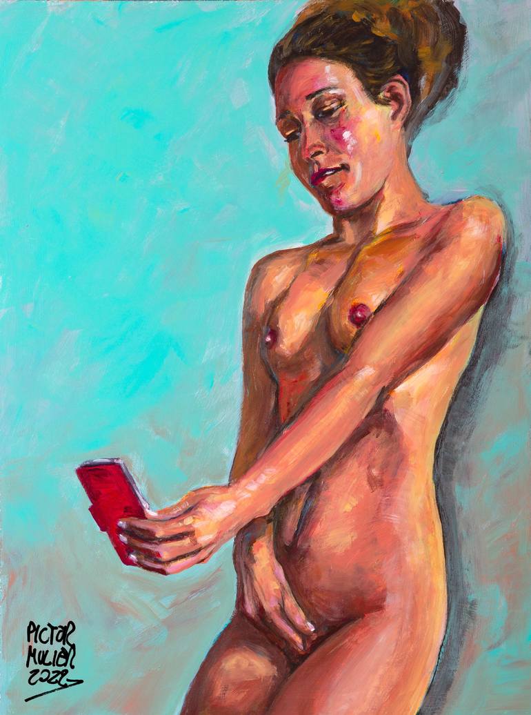 During confinement I began a series of erotic paintings dedicated to sex during confinement and how the Internet allowed many people to continue to develop their sexual fantasies.