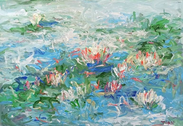 beautiful colors We are excited to introduce this **beautiful colors** painting, where nature is vividly expressed through every stroke. With elegant water lilies standing out against the blue water, the painting is both gentle and full of life. The pastel shades blend perfectly to create a peacefu...