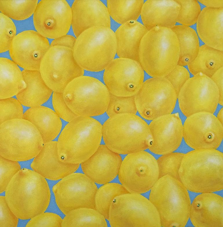 A beautiful life emerges when we go beyond our fixed reality and dare to explore the life we dream is possible. Represented here by a shower of lemons, full of color and life, with a different vision of life. Painting in Oil and Sand on wood