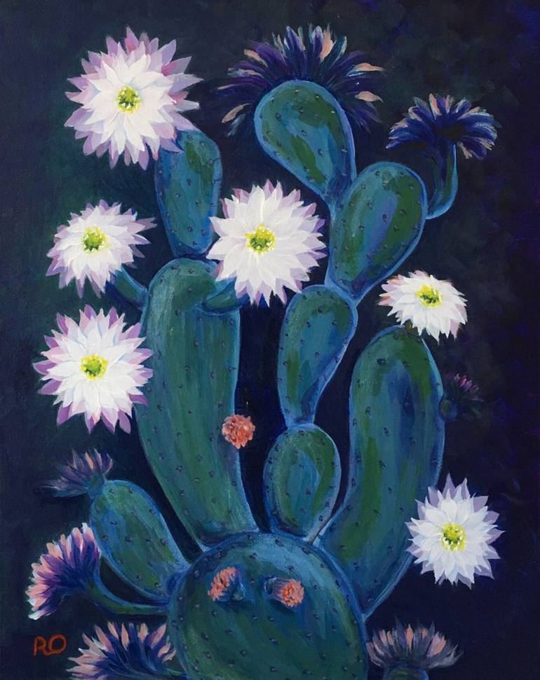 Original painting "Beauty for a Day" Size: Height 20 х Width 16, Depth 0.6, Inches. Materials:Acrylic on Canvas. Subject: Flowers. Style: Impressionism, Contemporary, Modern. Cactus blooms for only one day.