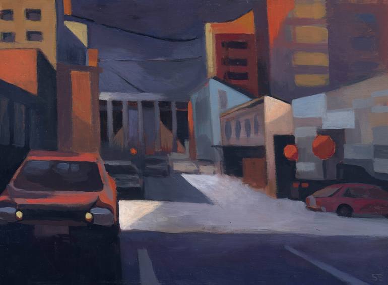 My work is a mix of observation, pop culture, historical references, free association and being open to where mistakes may lead. It's like the feeling of being inside of a dream where you are drawn into the emotion of a non linear narrative and have to find your own meaning. There’s a connection there or something that draws you in. It’s my job to create that connection through paint and the 2D surface. Sometimes it reveals itself quickly and organically; most times it’s a struggle which takes time and hard work to pull out the connection and uncover the soul of it. I want to share with the viewer, the progress of this struggle in my paintings. My process usually involves sketching to capture the physical place or moment, and bringing those studies into the studio to edit, simplify and sometimes deconstruct. I utilize sketchbooks and mediums which can be used to capture thoughts or moments quickly: graphite, colored pencils, watercolor and gouache. Paintings based on these studies generally involve the use of acrylic, oil, and sometimes collage. Final paintings are executed on canvas or custom wood panels. I also build custom wood framing for many of the pieces which adds to the personalized story I‘m telling. Painting for me is a necessity. It is my ultimate means of expression and communication. My goal in painting is much like that of a songwriter: Creating a riff or section of music which pulls people in, makes them dance, think, or look at their own life in a new way. I’m not referring to radio hits that get played every hour on the hour, making you despise them over time, but pieces that invite and reward multiple viewings, always presenting new and interesting perspectives and discoveries. It doesn’t have to be explainable — instead it should contain a depth and intricacy which invites a visual dialogue. I am intrigued by the balance between representation versus abstraction. There is something so human and beautiful about playing between these two worlds — the real and the unknown.