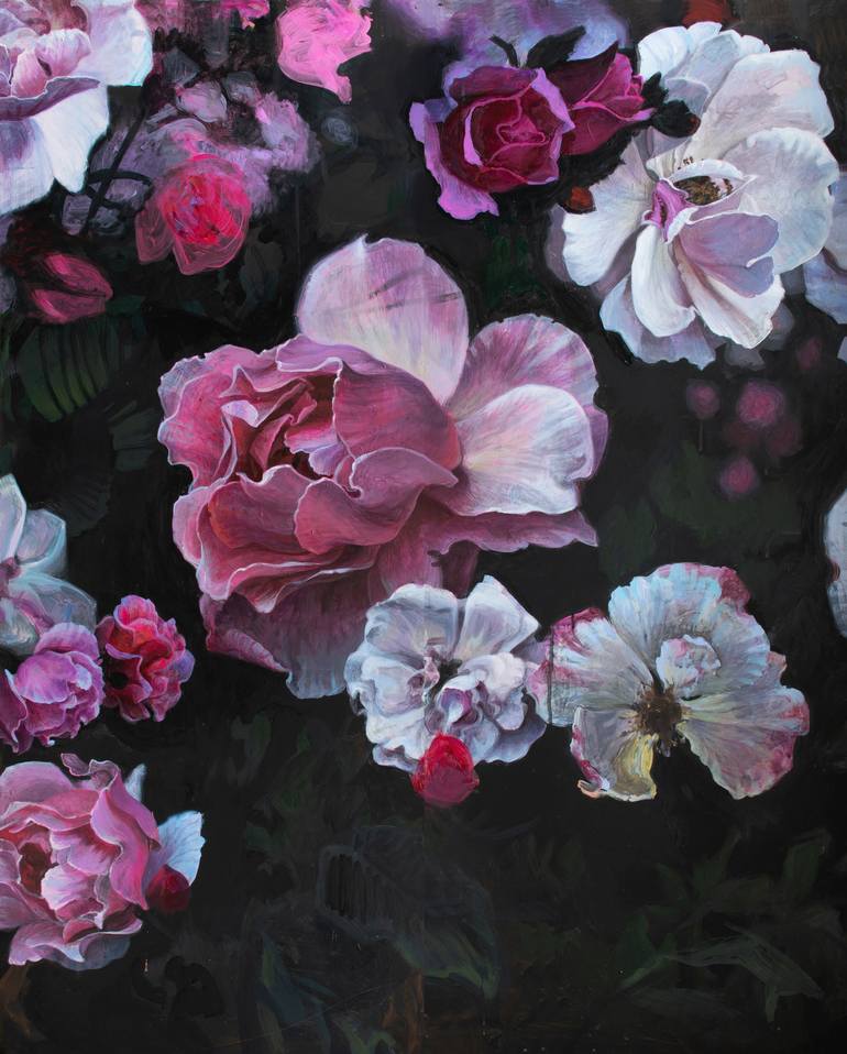 This a second (II) part of painting in a tryptich "Before the Sunrise". I was walking home. It was late spring in the wee hours and I found a rose bush near the entrance in a competitively different angle than usually on a sunny day. The colors were muted and emitted a barely noticeable gentle glo...