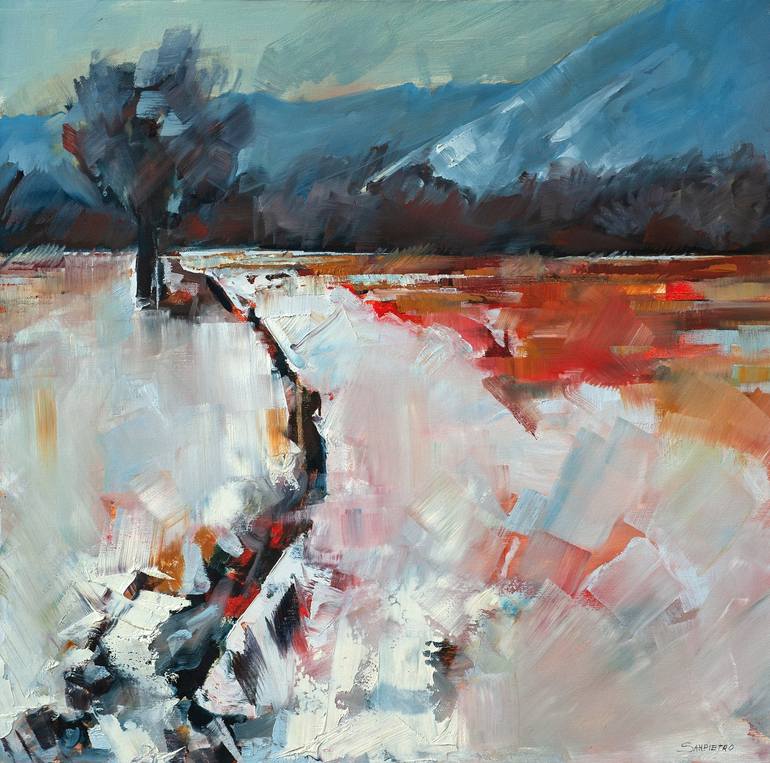 I tried to represent this scene in a semi-abstract way, avoiding all the small details of the subject and focusing on the colors and the composition. I think the balance of the composition is: LEFT --> elements (tree and river) without colors. RIGHT --> colors (oranges) without elements.