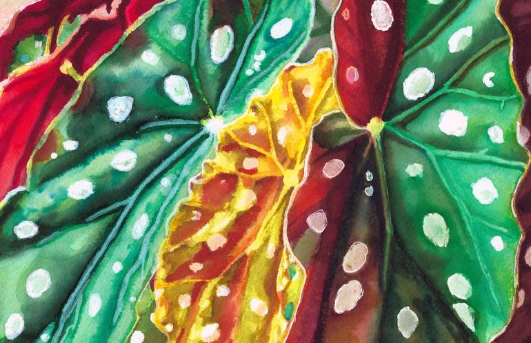 Painting through the pandemic, I looked for exotic and colorful plant species to consider and chose a type of begonia because of the abundant spots and unique coloring. While working I felt transported out of confinement of my home to the tropical rainforest, enjoyed examining the bold changes of th...