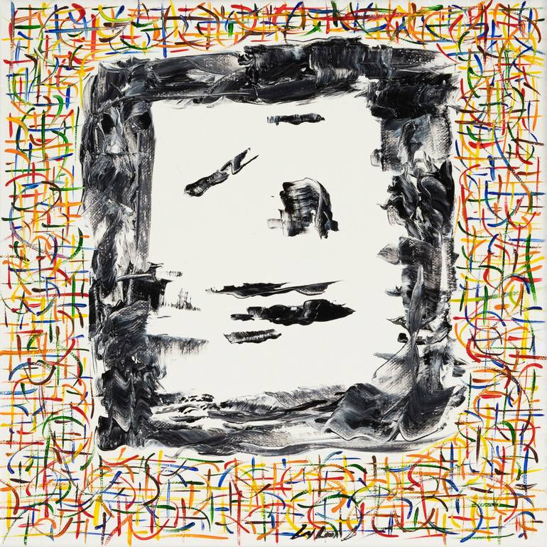 The artist hopes the viewer captures the sense of isolation and distortion one feels when alienated from others and society. Dialectic thinking inside with color and dynamic patterns on the outside. 30.48 cm x 30.48 cm acrylic gesso primed canvas stretched on wood frame with pigment in dried linsee...
