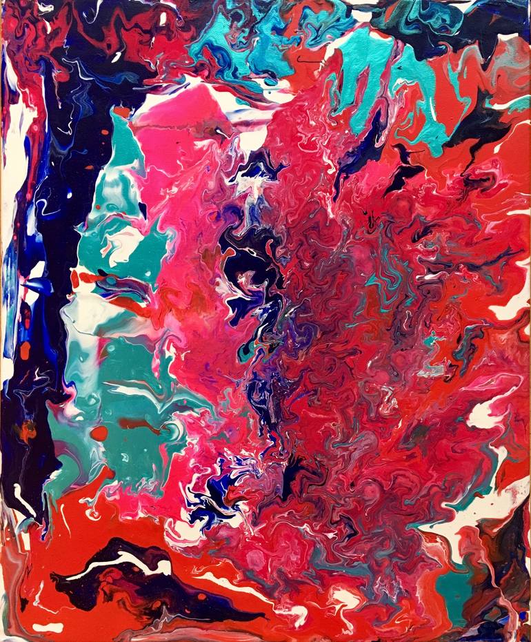 Acrylic on canvas, Behind the Pink is an abstract painting. Nevertheless, one can see in the centre of the painting an eye. It seems that someone is hiding behind, right in the center. This is a metaphor. What do women sometime hide behind their attributes of femininity ? Pink color is nowadays used...
