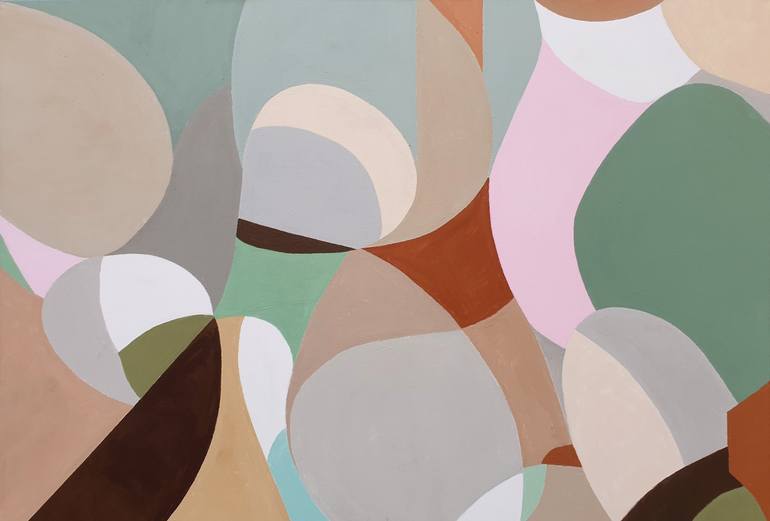 Original Beige, Brown, Green, Pink and Grey Abstract painting by Leon Grossmann Abstract painting. Original abstract art. 59 " width x 39,4 " height x 1.6" depth. (150 cm Breite x 100 cm Höhe x 4 cm Keilrahmenstärke) It was painted with professional Acrylic Colors. Paint on canvas. Stretched on ...