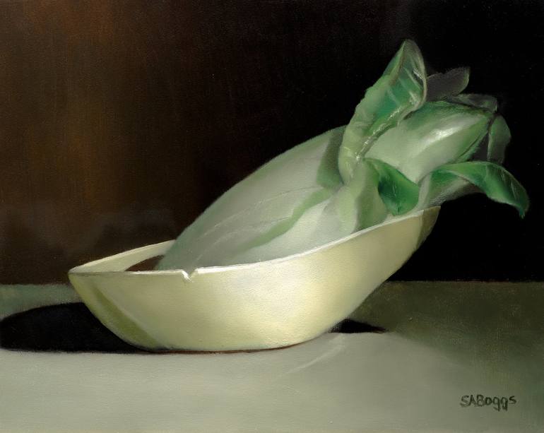 This is a Belgian endive in a yellow saucer. I thought that it was an interesting looking vegetable so I paired it up with this curved saucer that I felt complimented the shape of the endive. I painted this one very realistically to try to get the most out of the composition. I hope that you like th...