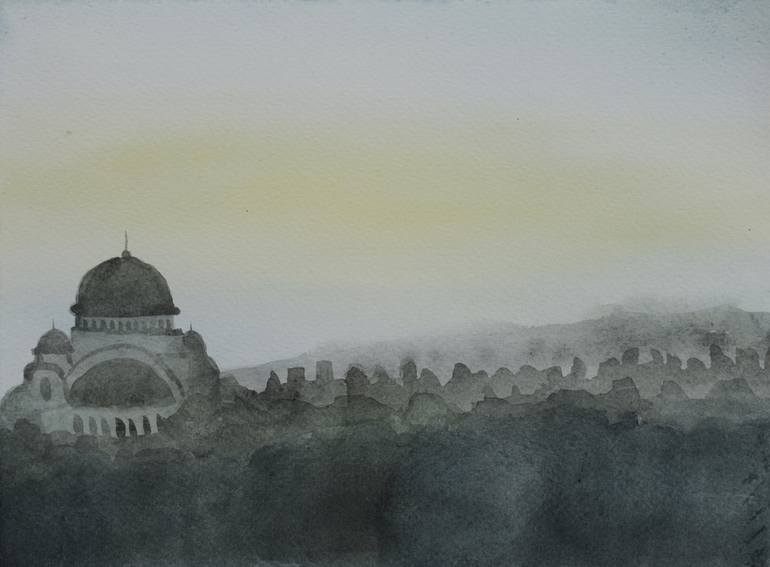 "Belgrade in the Haze" belongs to my newest series of watercolors. Panoramic images of cityscapes in the haze inspire it. Although the fog is usually created by air pollution, it is visually appealing and draws me to paint after such photographs. It is a minimalistic depiction of the panorama of B...