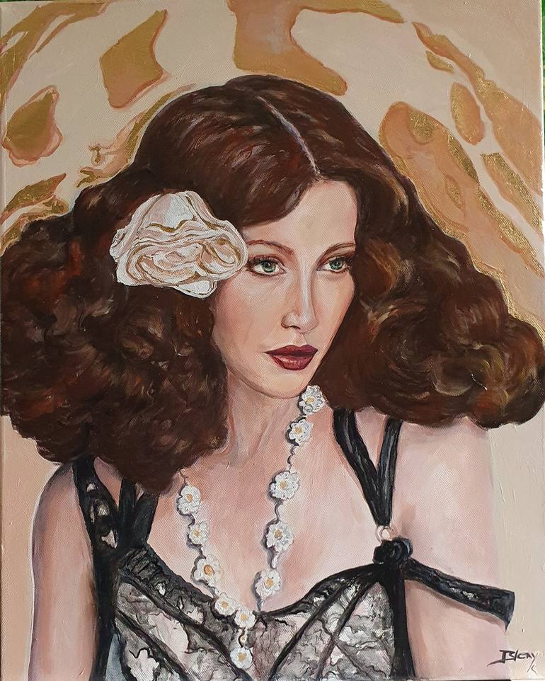 Art Deco or Art Nouveau has always inspired me. Painting portraits with this style remind me of the luxurious period of Art Nouveau and the elegance of this period. Alphonse Mucha was a great inspiration for this portrait. The viewers can get a glimpse of this prospering period. The use of metal lea...
