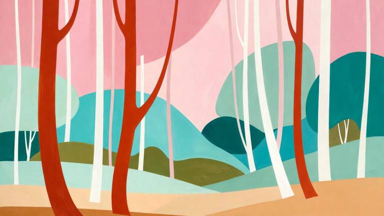 “Bending Forest” is a series of abstract acrylic paintings that explore the image of the forest as a visual rhythm rather than a simulated space. The curved, leaning, and winding tree trunks are simplified into flat, angular, layered forms, creating a structure that is both dynamic and balanced. The...