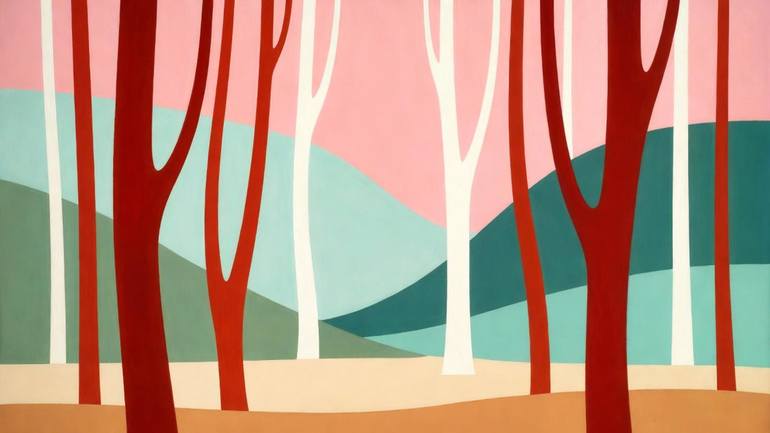 “Bending Forest” is a series of abstract acrylic paintings that explore the image of the forest as a visual rhythm rather than a simulated space. The curved, leaning, and winding tree trunks are simplified into flat, angular, layered forms, creating a structure that is both dynamic and balanced. The...