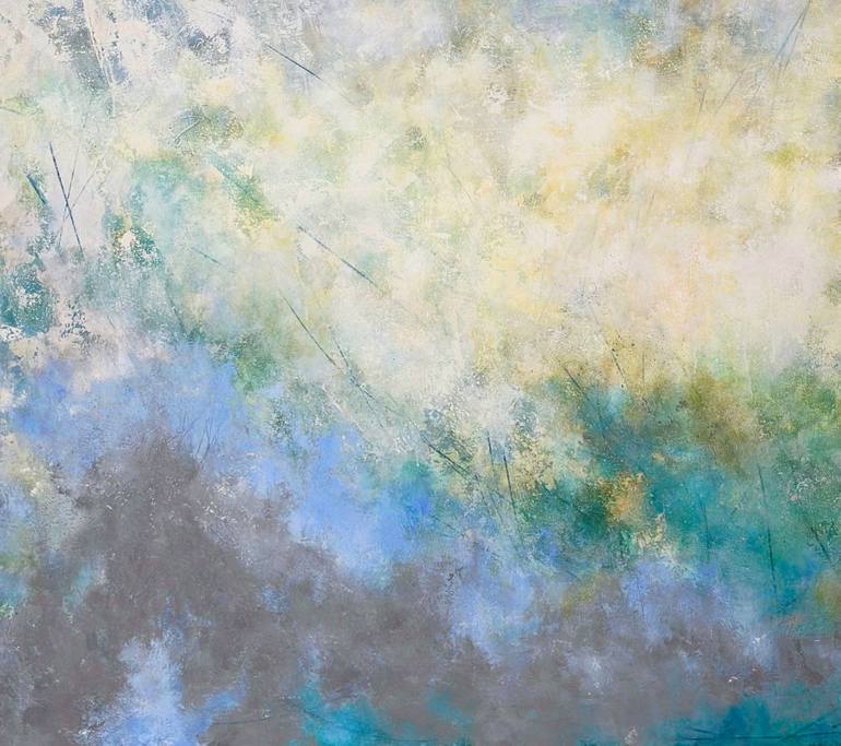 This painting is acrylic on canvas 48"H x 56"W x 1.5"D sides are raw canvas with signature on the right side and on the back of the panel. BENEATH THE SURF, was inspired by my last trip to the beach where the beauty was endless, but looking close in the sand, seaweed and natural debris are signs of...
