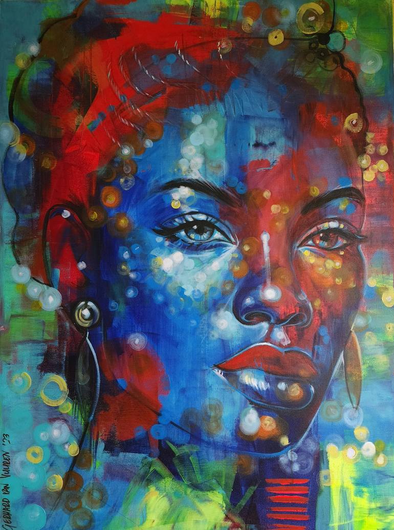 Gerhard Van Vuuren is a South African artist based in Pretoria who has been a full-time artist since 2002, self-taught, who approaches painting as a way of expressing emotion. He is well known for his large-scale contemporary portraits depicting people of Africa. He works in acrylic paint. Gerhard paints by applying abstraction, he creates intense personal moments masterfully created by means of rules and omissions, acceptance and refusal, luring the viewer. He starts with a title, a meaningful thought or a feeling, around which he then builds his painting, striving for emotional impact. His style is distinctive and the class and character of emotions he employs to describe and document his subjects makes his wonderful work noticeable! The signature is consistent and one we will always associate it with him. Gerhard’s artworks are well received by South Africans as well as the International collector and investor. His paintings directly respond to the surrounding environment and uses everyday people as a starting point. By emphasising aesthetics, he approaches a wide scale of subjects in a multi-layered way, likes to involve the viewer and believes in the idea of beauty following form in a work.