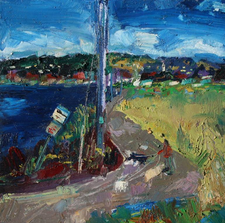 This plein air painting was done at the Berkeley Marina, a favorite spot to paint. I like the way the landscape breaks down into simple puzzle like shapes. The surface is rich with texture. The edges are deep, painted black. This is ready to hang when received.
