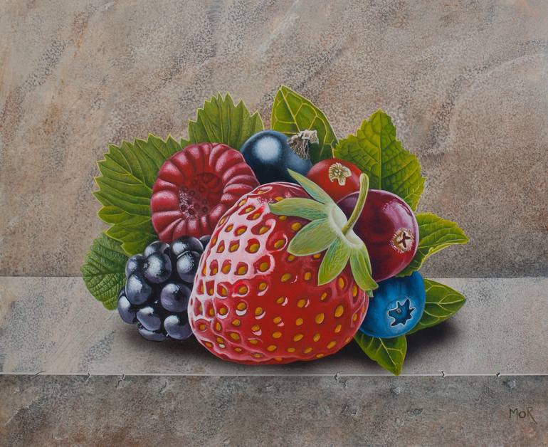 Berries still belong to my favorite subjects, when it comes to painting. I try to catch their shapes, colors and textures as good as I can. Oil and acrylic on canvas panel, covered with several layers of UV-resistant varnish.
