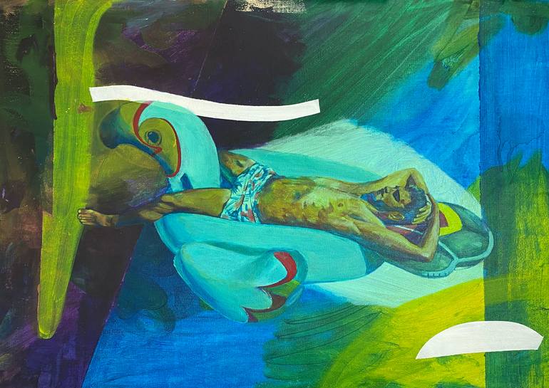 My artistic approach focuses on the representation of memories and recollections, mainly using paint on canvas and paper. I explore themes such as the passage of time and the effect of color on emotions. My style is characterized by its reality, its graphics, its vivid colors, its dreamlike, nostalgic and poetic aspect. My main source of inspiration comes from photos I take personally, from memories and vacations, but also from photos of unknown people I find on social networks. These moments in life are transposed onto canvas. Portraits, bathing scenes, solitude and memories of personal significance that have influenced my career are recurring themes in my work. By using social and cultural contexts in my work, I seek to convey the memory of my time, to leave a reminder of my daily life and that of unknown people.